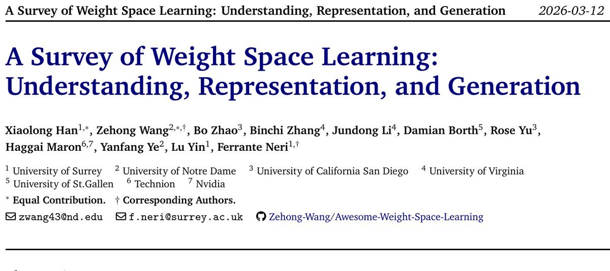 This survey systematically organizes the frontier of “Weight Space Learning.” It marks an important paradigm shift: expanding the focus of AI research from “learning data” to “learning the learner (the model) itself.”